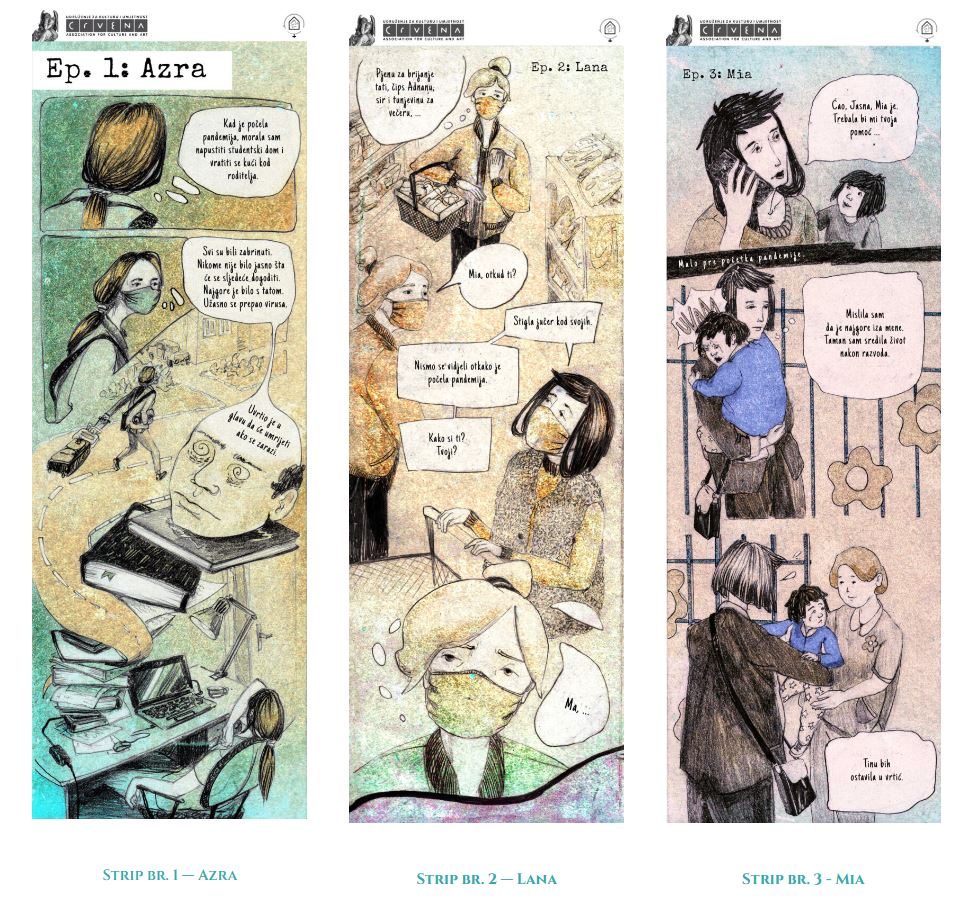 Other than the illustrator, the project also gathered some other women – writer Lejla Kalamujić and Lara Končar, and Hristina Cvetinčanin Knežević, who were the project coordinators. The target group focused on the generation of millennials and youngsters who are just getting on their feet and whose lives were already difficult enough even without the pandemic.